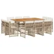 vidaXL Vrtna jedilna garnitura 11-delna z blazinami bež poli ratan