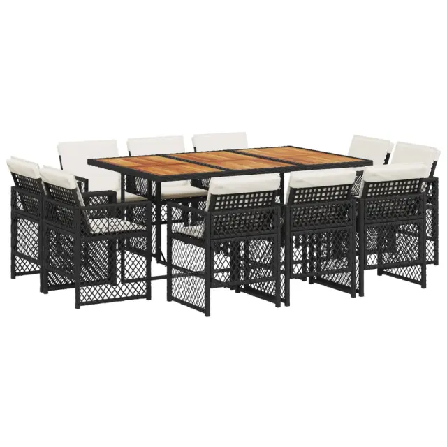vidaXL Vrtna jedilna garnitura 11-delna z blazinami črna poli ratan
