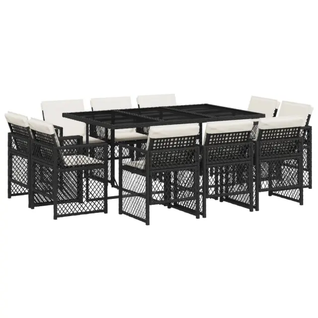 vidaXL Vrtna jedilna garnitura 11-delna z blazinami črna poli ratan