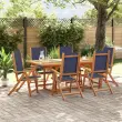 S to leseno vrtno jedilno garnituro lahko z družino in prijatelji uživate v prijetnem obroku na prostem. Trden akacijev les: Ta zunanja jedilna garnitura je izdelana iz trdnega akacijevega lesa. Trden akacijev les je čudovit naravni material. Akacijev les je tropski trden les, ki je gost, močan in vzdržljiv. Nastavljiva in zložljiva funkcija: Vrtni stol lahko nastavite v 5 položajev, tako da lahko vedno najdete najudobnejši položaj za sedenje. Lahko ga tudi zložite, da prihranite prostor, ko ga ne uporabljate. Praktična zasnova: Vrtna miza je posebej oblikovana tako, da jo je mogoče raztegniti, ko potrebujete dodaten prostor. Poleg tega je v mizni plošči luknja za senčnik, tako da lahko preprosto pritrdite senčnik in ustvarite senčni kotiček. Trpežna mizna plošča: Ta jedilna miza ima robustno mizno ploščo. Nanjo lahko odložite svoje prigrizke, pijačo in vse svoje najljubše okrasne predmete. Površina, ki je enostavna za čiščenje: Ta vrtna jedilna miza in stoli se zlahka očistijo z vlažno krpo: površina je obdelana z oljem. Dobro je vedeti:Če želite, da vaše zunanje pohištvo ostane lepo, vam priporočamo, da ga zaščitite z vodoodporno prevleko.Vrtna miza:Material: Trden akacijev les z oljnim premazomDimenzije: (150-200) x 100 x 75 cm (D x Š x V)RaztegljivaVrtni stol:Barva: ModraMaterial: Trden akacijev les z oljnim premazom, tekstilDimenzije: 57 x 72 x 109 cm (Š x G x V)Višina sedeža od tal: 45 cmVišina naslonjala za roke, merjena od tal: 66 cmNastavljivo naslonjalo (5 položajev)Maksimalna nosilnost (na sedež): 110 kgPotrebno sestavljanje: DaPaket vsebuje:1 x Vrtna miza6 x Vrtni stol 3279303