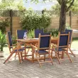 S to leseno vrtno jedilno garnituro lahko z družino in prijatelji uživate v prijetnem obroku na prostem. Trden akacijev les: Ta zunanja jedilna garnitura je izdelana iz trdnega akacijevega lesa. Trden akacijev les je čudovit naravni material. Akacijev les je tropski trden les, ki je gost, močan in vzdržljiv. Nastavljiva in zložljiva funkcija: Vrtni stol lahko nastavite v 5 položajev, tako da lahko vedno najdete najudobnejši položaj za sedenje. Lahko ga tudi zložite, da prihranite prostor, ko ga ne uporabljate. Praktična zasnova: Vrtna miza je posebej oblikovana tako, da jo je mogoče raztegniti, ko potrebujete dodaten prostor. Poleg tega je v mizni plošči luknja za senčnik, tako da lahko preprosto pritrdite senčnik in ustvarite senčni kotiček. Trpežna mizna plošča: Ta jedilna miza ima robustno mizno ploščo. Nanjo lahko odložite svoje prigrizke, pijačo in vse svoje najljubše okrasne predmete. Površina, ki je enostavna za čiščenje: Ta vrtna jedilna miza in stoli se zlahka očistijo z vlažno krpo: površina je obdelana z oljem. Dobro je vedeti:Če želite, da vaše zunanje pohištvo ostane lepo, vam priporočamo, da ga zaščitite z vodoodporno prevleko.Vrtna miza:Material: Trden akacijev les z oljnim premazomDimenzije: (120-170) x 80 x 75 cm (D x Š x V)RaztegljivaVrtni stol:Barva: ModraMaterial: Trden akacijev les z oljnim premazom, tekstilDimenzije: 57 x 72 x 109 cm (Š x G x V)Višina sedeža od tal: 45 cmVišina naslonjala za roke, merjena od tal: 66 cmNastavljivo naslonjalo (5 položajev)Maksimalna nosilnost (na sedež): 110 kgPotrebno sestavljanje: DaPaket vsebuje:1 x Vrtna miza6 x Vrtni stol 3279311