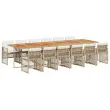 vidaXL Vrtna jedilna garnitura 13-delna z blazinami bež poli ratan