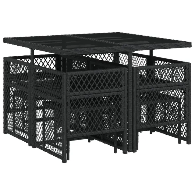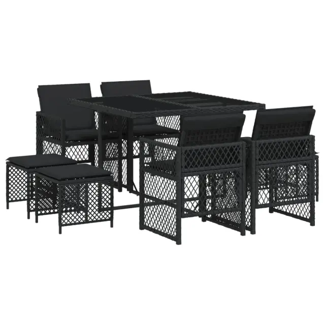 vidaXL Vrtna jedilna garnitura 9-delna z blazinami črn poli ratan