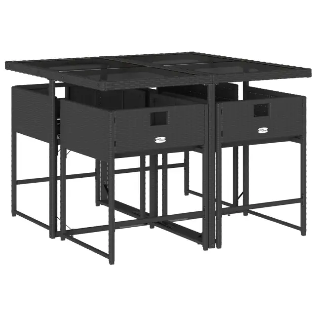 Ta vrtna jedilna garnitura je odlična izbira za večerjo na prostem ali za sprostitev na vrtu, dvorišču ali terasi. Vzdržljiv material: PE ratan, znan tudi kot poli ratan, je močan sintetični material, ki zahteva malo vzdrževanja in je videti kot naravni ratan. Je lahek, enostaven za čiščenje in se zaradi svoje vzdržljivosti in odpornosti na vremenske vplive pogosto uporablja za zunanje pohištvo.Kompaktno shranjevanje: Te stole je mogoče zložiti, zato jih je enostavno shraniti pod mizo. Ko so zloženi, se lepo prilegajo pod mizo in tvorijo prostorsko varčno kocko.Udobno sedenje: To zunanje pohištvo z debelo oblazinjenimi blazinami zagotavlja udobno sedenje.Prevleko je mogoče odstraniti in oprati: Te sedežne blazine imajo odstranljive prevleke za lažje pranje in vzdrževanje. Prevleke za blazine imajo na zadnji strani zavihek za enostavno pritrditev na naslonjala.Steklena mizna plošča: Površina zunanje mize je izdelana iz močnega in trpežnega kaljenega stekla, kar omogoča enostavno čiščenje z vlažno krpo in vašemu zunanjemu prostoru doda pridih elegance. Dobro je vedeti:Če želite, da vaše zunanje pohištvo ostane lepo, vam priporočamo, da ga zaščitite z vodoodporno prevleko.Maksimalna nosilnost (na sedež): 110 kgUV-odpornoPotrebno sestavljanje: DaMiza:Barva mizice: ČrnaBarva stekla: ČrnaMaterial: PE ratan, jeklo s prašnim premazom, kaljeno stekloDimenzije: 110 x 106 x 73 cm (D x Š x V)Stol:Barva: ČrnaMaterial: PE ratan, jeklen okvir s prašnim premazomDimenzije: 50,5 x 50 x 79 cm (Š x G x V)Velikost sedišča: 45,5 x 38 cm (Š x G)Višina sedišča, merjena od tal: 43 cmVišina naslonjal za roke, merjena od tal: 63,5 cmBlazina:Barva: ČrnaMaterial prevleke: Tkanina (100 % poliester)Material polnila: PenaDimenzije blazine za stol: 76 x 45,5 x 2 cm (D x Š x D)Paket vsebuje:1 x Vrtna miza4 x Vrtni stol4 x Blazina za stol z visokim naslonom s snemljivo in pralno prevleko 3278022