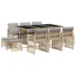 vidaXL Vrtna jedilna garnitura 11-delna z blazinami bež poli ratan