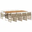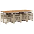vidaXL Vrtna jedilna garnitura 9-delna z blazinami bež poli ratan