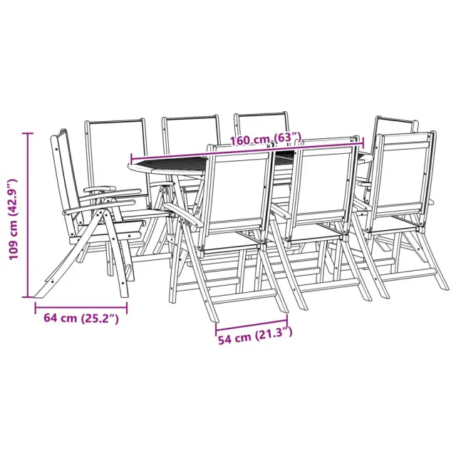 vidaXL Vrtna jedilna garnitura 9-delna trden akacijev les in tekstilen