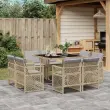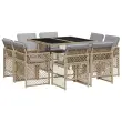 vidaXL Vrtna jedilna garnitura 9-delna z blazinami bež poli ratan