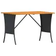 Ta vrtna jedilna garnitura je odlična izbira za večerjo na prostem ali za sprostitev na vrtu, dvorišču ali terasi. Trpežen material: PE ratan, znan tudi kot poli ratan, je močan sintetični material, ki ne potrebuje vzdrževanja in je videti kot naravni ratan. Je lahek, enostaven za čiščenje in se zaradi svoje vzdržljivosti in odpornosti na vremenske vplive pogosto uporablja za zunanje pohištvo.Stabilna mizna plošča, ki je enostavna za čiščenje: Ta vrtna miza ima ploščo iz akacijevega lesa, ki je čvrsta, vzdržljiva in jo je enostavno čistiti z vlažno krpo.Udobno sedenje: To zunanje pohištvo z debelo oblazinjenimi blazinami zagotavlja udobno sedenje.Prevleko je mogoče odstraniti in oprati: Te sedežne blazine imajo odstranljive prevleke za lažje pranje in vzdrževanje.Vsestranski stolček za noge: Stolček je vsestransko uporaben, saj služi kot udoben naslon za noge, ko ležite na kavču, ali kot dodaten sedež na vrtu. Dobro je vedeti:Če želite, da vaše zunanje pohištvo ostane lepo, vam priporočamo, da ga zaščitite z vodoodporno prevleko.Maks. nosilnost (na sedež): 110 kgUV-odpornoPotrebno sestavljanje: DaStolček:Barva: ČrnaMaterial: PE ratan, jeklen okvir s prašnim premazomDimenzije: 43 x 38 x 36 cm (Š x G x V)Višina sedeža, od tal (brez blazine): 36 cmMiza:Barva: ČrnaMaterial: PE ratan, jeklo s prašnim premazom, trden akacijev les z naravnim oljnim premazomDimenzije: 105 x 75 x 72 cm (D x Š x V)Blazina:Barva: Kremno belaMaterial prevleke: Tkanina (100 % poliester)Material polnila: PenaDimenzije sedežne blazine: 43 x 38 x 3 cm (Š x G x D)Paket vsebuje:1 x Vrtna miza2 x Vrtni stolček2 x Sedežna blazina s snemljivo pralno prevleko 4104135
