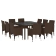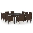 vidaXL Vrtna jedilna garnitura 11-delna poli ratan rjava