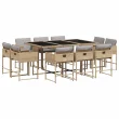 vidaXL Vrtna jedilna garnitura 11-delna z blazinami bež poli ratan