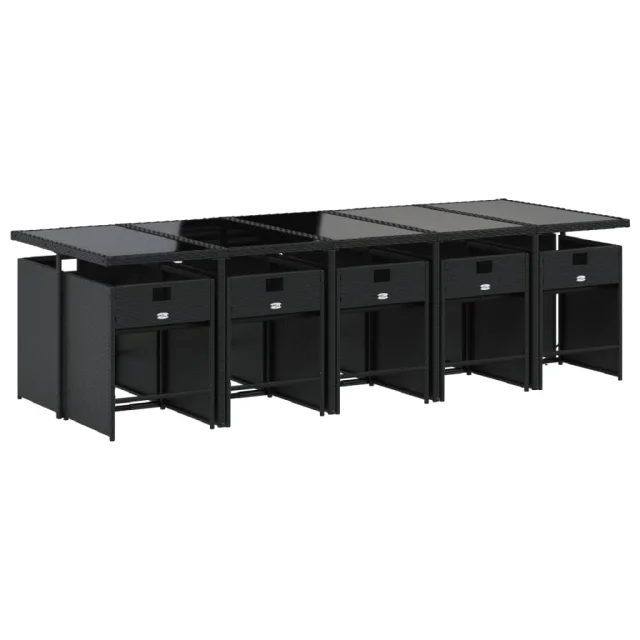 vidaXL Vrtna jedilna garnitura 11-delna z blazinami črna poli ratan