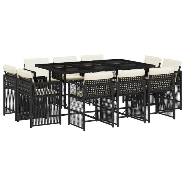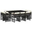 vidaXL Vrtna jedilna garnitura 11-delna z blazinami črna poli ratan