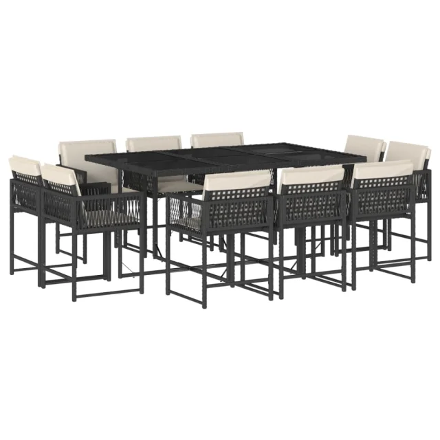 vidaXL Vrtna jedilna garnitura 11-delna z blazinami črna poli ratan