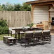 vidaXL Vrtna jedilna garnitura 11-delna z blazinami rjava poli ratan