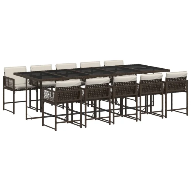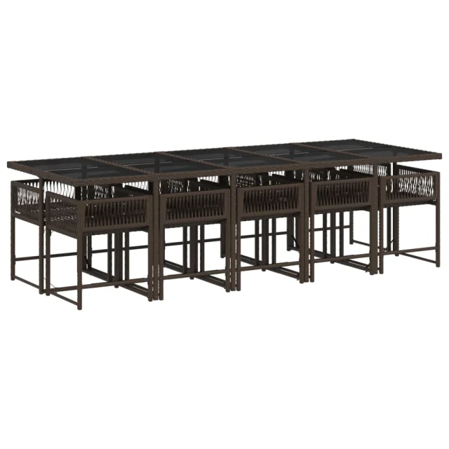 vidaXL Vrtna jedilna garnitura 11-delna z blazinami rjava poli ratan
