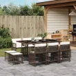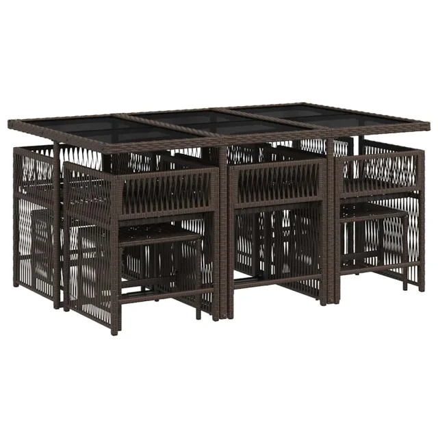 vidaXL Vrtna jedilna garnitura 11-delna z blazinami rjava poli ratan