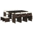 vidaXL Vrtna jedilna garnitura 11-delna z blazinami rjava poli ratan