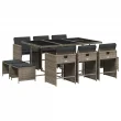vidaXL Vrtna jedilna garnitura 11-delna z blazinami siv poli ratan