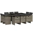vidaXL Vrtna jedilna garnitura 11-delna z blazinami siv poli ratan