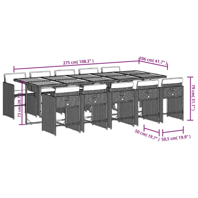 vidaXL Vrtna jedilna garnitura 11-delna z blazinami siv poli ratan