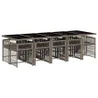 vidaXL Vrtna jedilna garnitura 11-delna z blazinami siv poli ratan