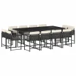 vidaXL Vrtna jedilna garnitura 13-delna z blazinami črn poli ratan