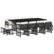vidaXL Vrtna jedilna garnitura 13-delna z blazinami črn poli ratan