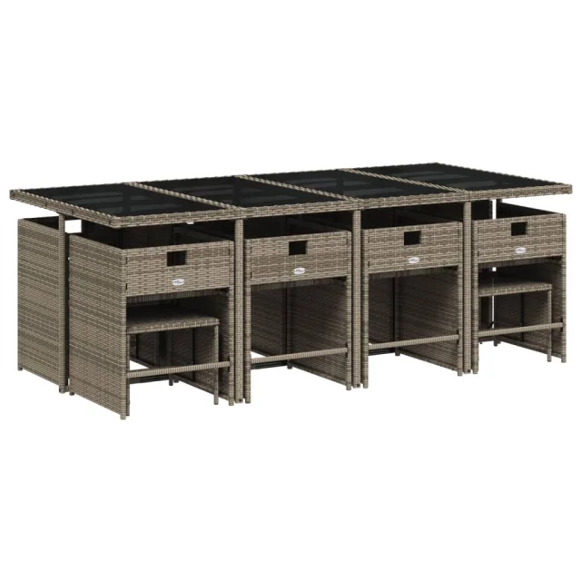 vidaXL Vrtna jedilna garnitura 13-delna z blazinami siv poli ratan