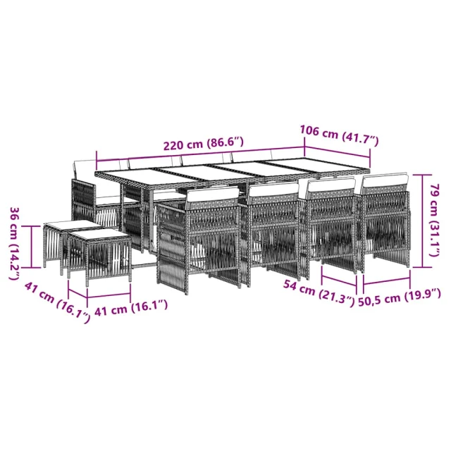 vidaXL Vrtna jedilna garnitura 13-delna z blazinami sv. siv poli ratan