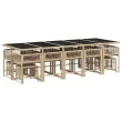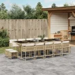 vidaXL Vrtna jedilna garnitura 15-delna z blazinami bež poli ratan