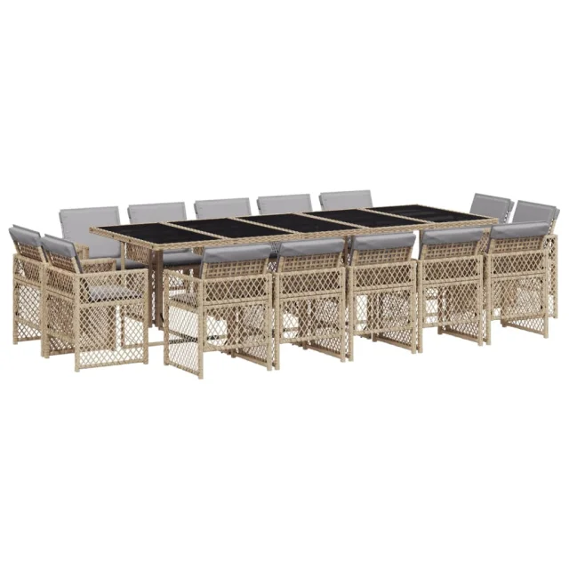 vidaXL Vrtna jedilna garnitura 15-delna z blazinami bež poli ratan