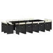 vidaXL Vrtna jedilna garnitura 15-delna z blazinami črn poli ratan
