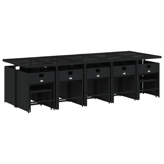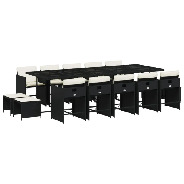 vidaXL Vrtna jedilna garnitura 15-delna z blazinami črn poli ratan