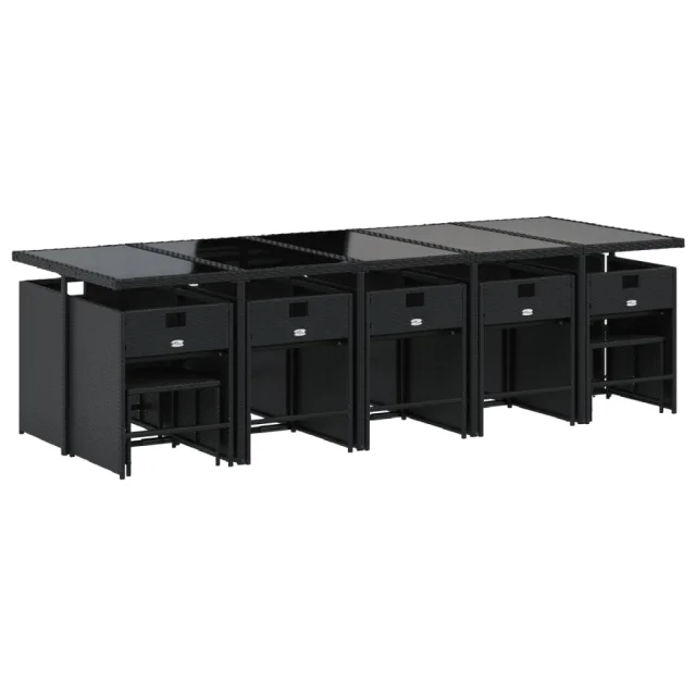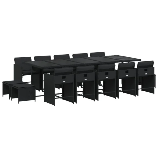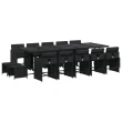 vidaXL Vrtna jedilna garnitura 15-delna z blazinami črn poli ratan