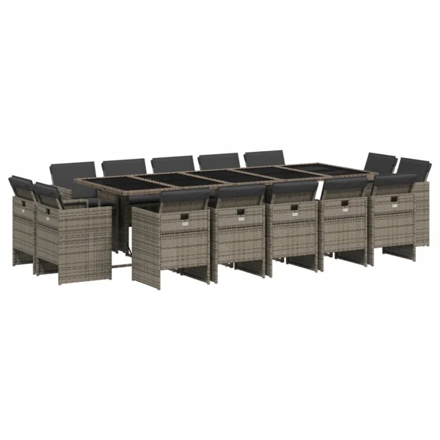 vidaXL Vrtna jedilna garnitura 15-delna z blazinami siv poli ratan