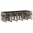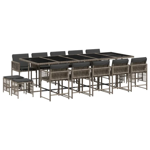 vidaXL Vrtna jedilna garnitura 15-delna z blazinami siv poli ratan