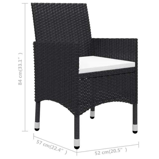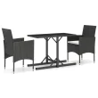 vidaXL Vrtna jedilna garnitura 3-delna poli ratan in steklo črna