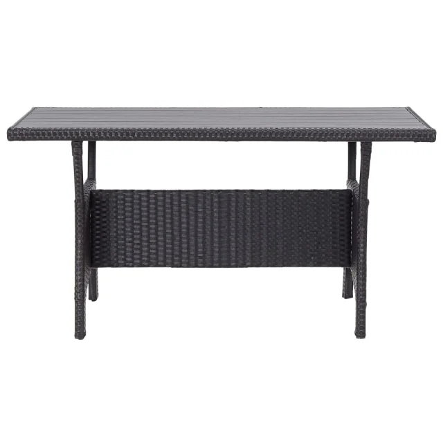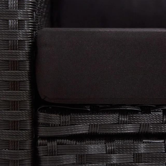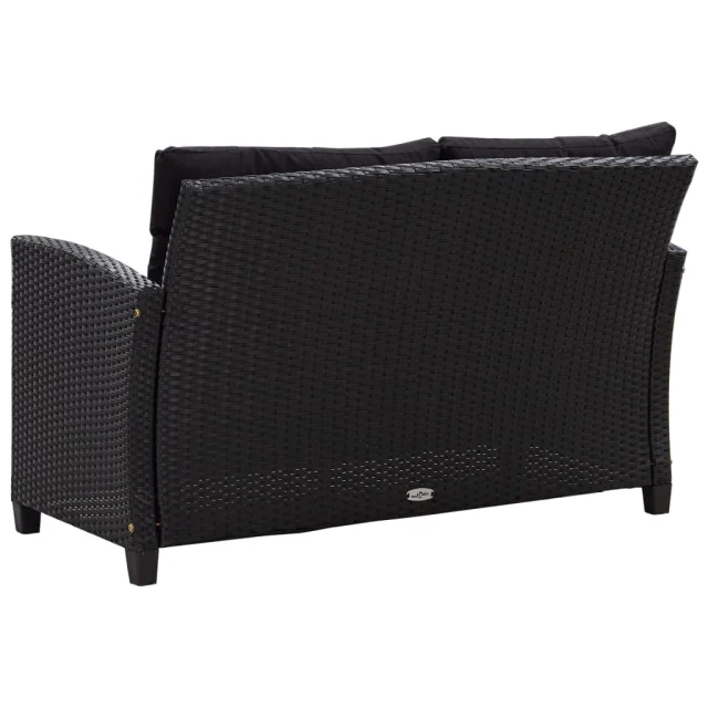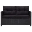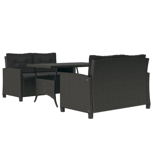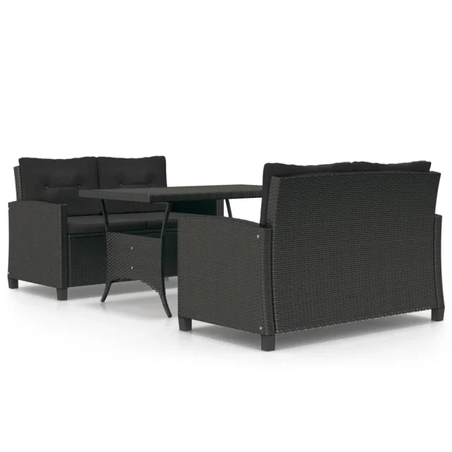vidaXL Vrtna jedilna garnitura 3-delna s črnimi blazinami poli ratan