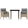 vidaXL Vrtna jedilna garnitura 3-delna z blazinami bež poli ratan