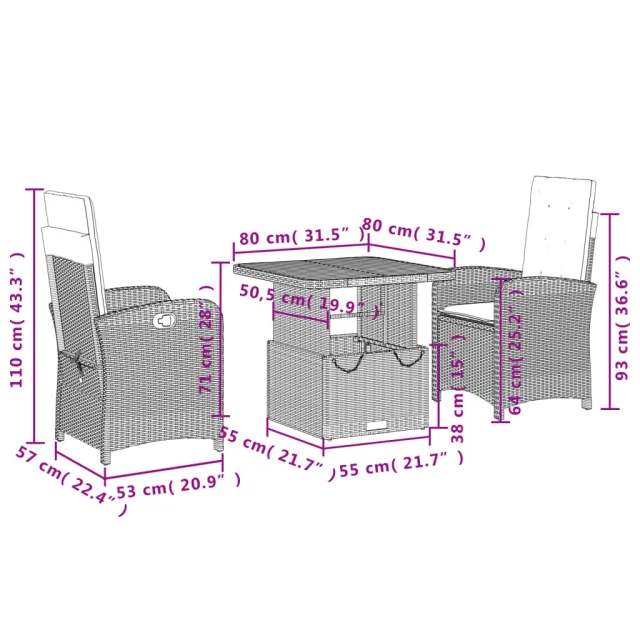• Dimenzije mize: 80 x 80 x 40/71 cm (D x Š x V)