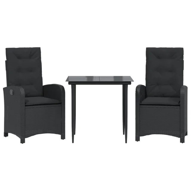 vidaXL Vrtna jedilna garnitura 3-delna z blazinami črn poli ratan