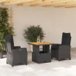 vidaXL Vrtna jedilna garnitura 3-delna z blazinami črn poli ratan