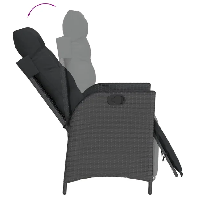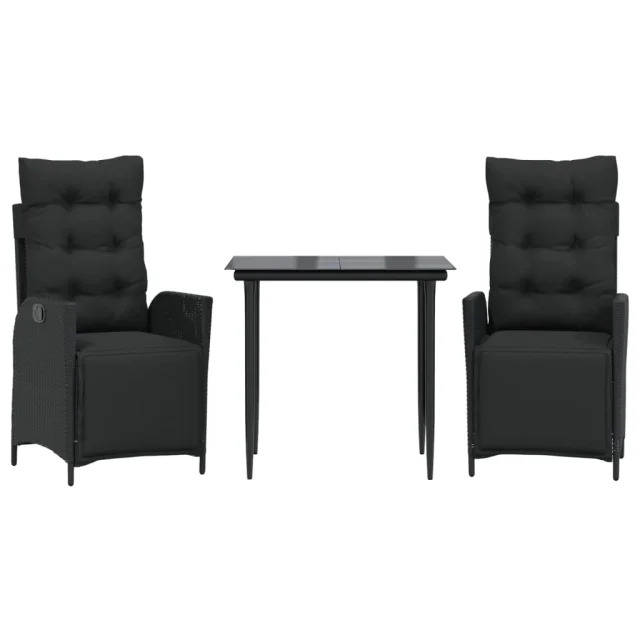 vidaXL Vrtna jedilna garnitura 3-delna z blazinami črn poli ratan