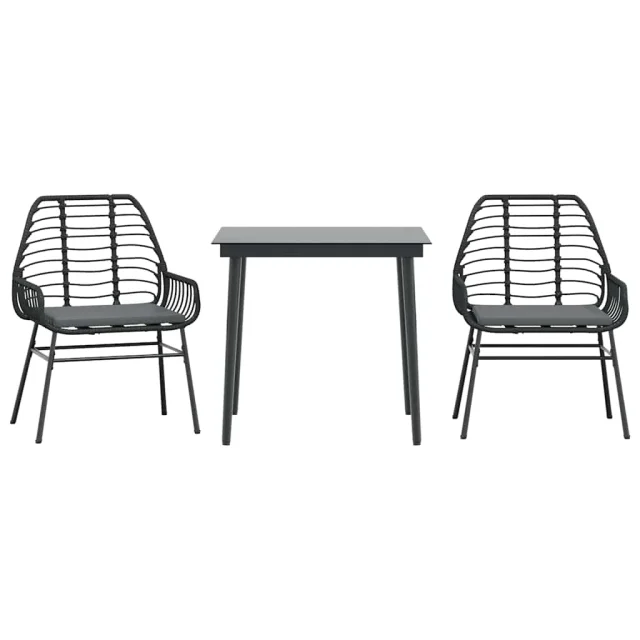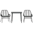 vidaXL Vrtna jedilna garnitura 3-delna z blazinami črn poli ratan