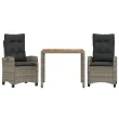 vidaXL Vrtna jedilna garnitura 3-delna z blazinami siv poli ratan