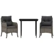 vidaXL Vrtna jedilna garnitura 3-delna z blazinami siv poli ratan