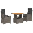vidaXL Vrtna jedilna garnitura 3-delna z blazinami siv poli ratan