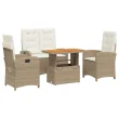 vidaXL Vrtna jedilna garnitura 4-delna z blazinami bež poli ratan