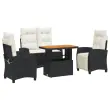 vidaXL Vrtna jedilna garnitura 4-delna z blazinami črn poli ratan